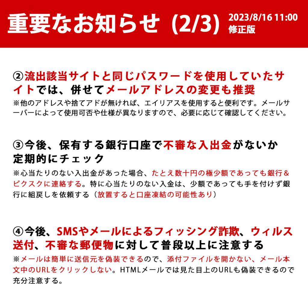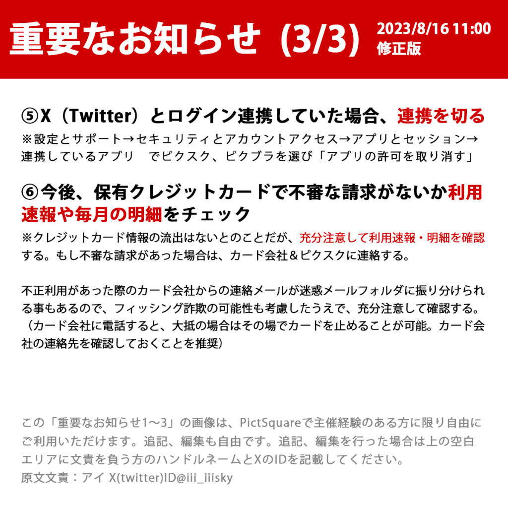 - 専門機関による調査が完了するまで、pictSQUAREサーバーは停止。