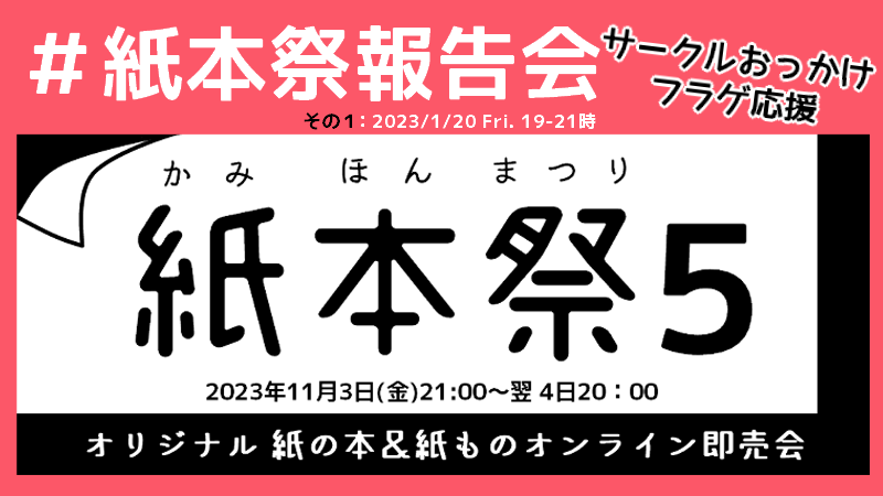 #紙本祭報告会 は、2023/11/3(金祝)~11/4(土)に開催されるオンラインイベント、「紙本祭5」参加サークルさんの事前宣伝を応援する企画です。
