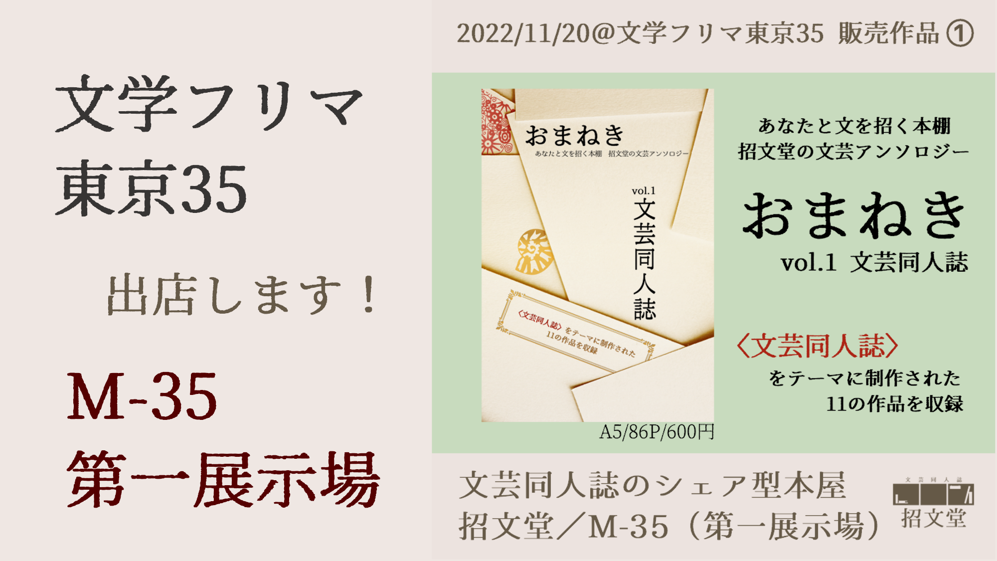 2022/11/20(日)開催の文学フリマ東京35に出店します!