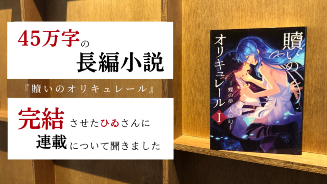 Interview:45万字の長編小説『贖いのオリキュレール』を完結させたひゐさんに連載について聞きました 小説投稿サイト・カクヨムで約3年半前に連載開始、2023年3月に完結した『贖いのオリキュレール』(略称:あがおり)。山本Q太郎全109話、約45万文字の読み応えある「あがおり」。ふとしたきっかけで読み始めたはずがいつの間にか夢中になっていた... 2026.01.15