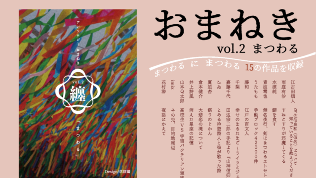【募集終了】文芸テーマアンソロジー『おまねき』vol.2作品募集 文芸同人誌のちいさなシェア型本屋・招文堂が、 ちいさな文芸アンソロジーをつくります。vol.2のテーマは「まつわる」文学フリマ東京37(2023/11/11)での発行に向け、作品募集をいたしますよ!コンセプト「自身の制作の片手間に参加でき、... 2026.01.15