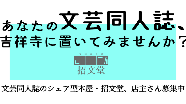 店主さん募集要項 招文堂とは?・オリジナルの文芸同人誌を作る方が、ご自分の作品専用の棚を持てるシェア型本屋です。シェア型本屋:参加者それぞれが自分の棚を持ち、棚づくりと運営を皆でちょっとずつシェアする本屋のこと。・売上をアップする目的でのご参加には不向きです... 2026.01.15