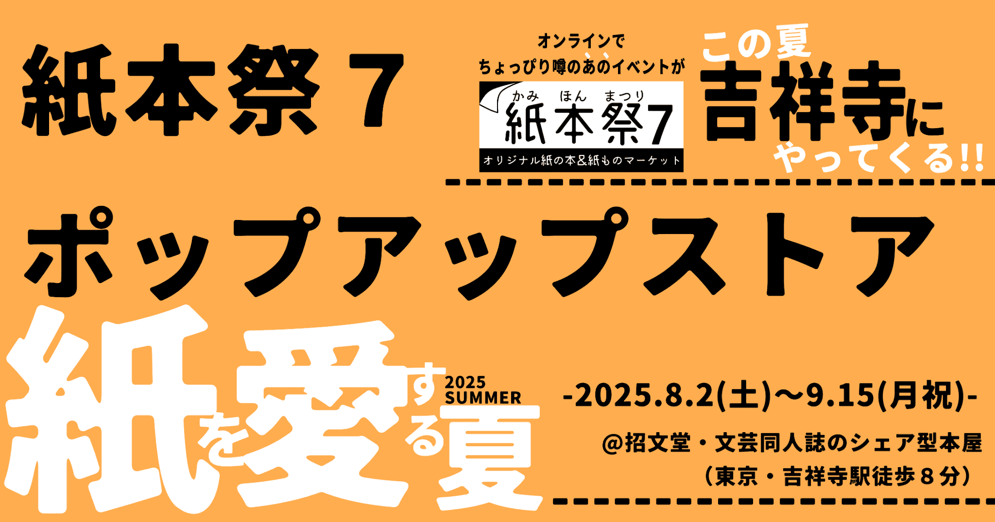 紙の本&紙ものオンラインイベント「紙本祭7」より、7名の作家さんによる13作品が招文堂にポップアップ!8/2(土)12:00~9/15(月祝)22:00限定販売_店頭でも展示販売中!