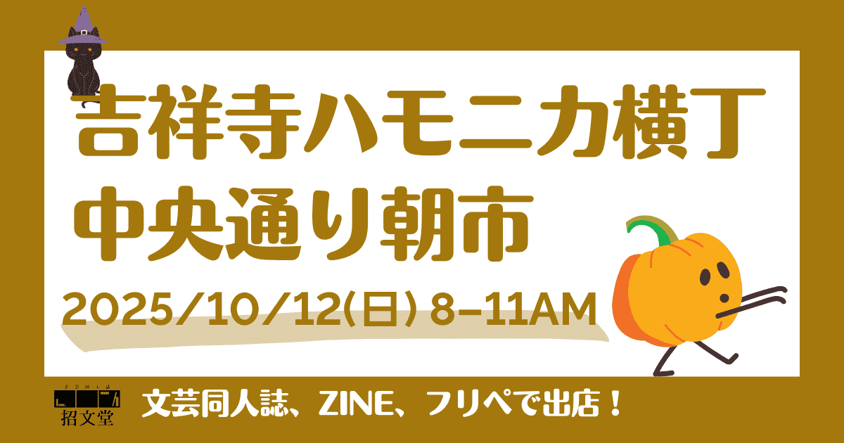 吉祥寺ハモニカ横丁中央通り朝市に出店します(2025年10月12日)