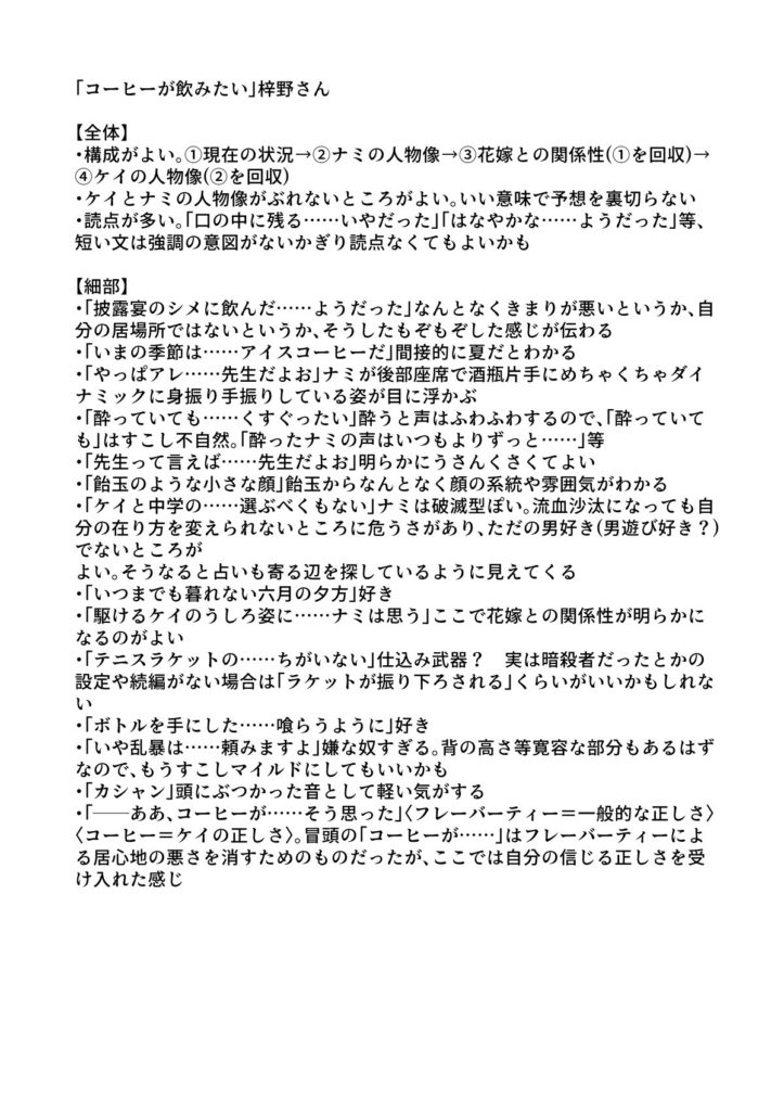・この描写は●●にすると狙いにより近づくかも?…など。各作者から提出された「ここが知りたいチェックポイント」も参照してくださいね。