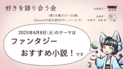 三月は、作品や感想会のログを招文堂サイトに掲載する【オープン】形式での開催です。
