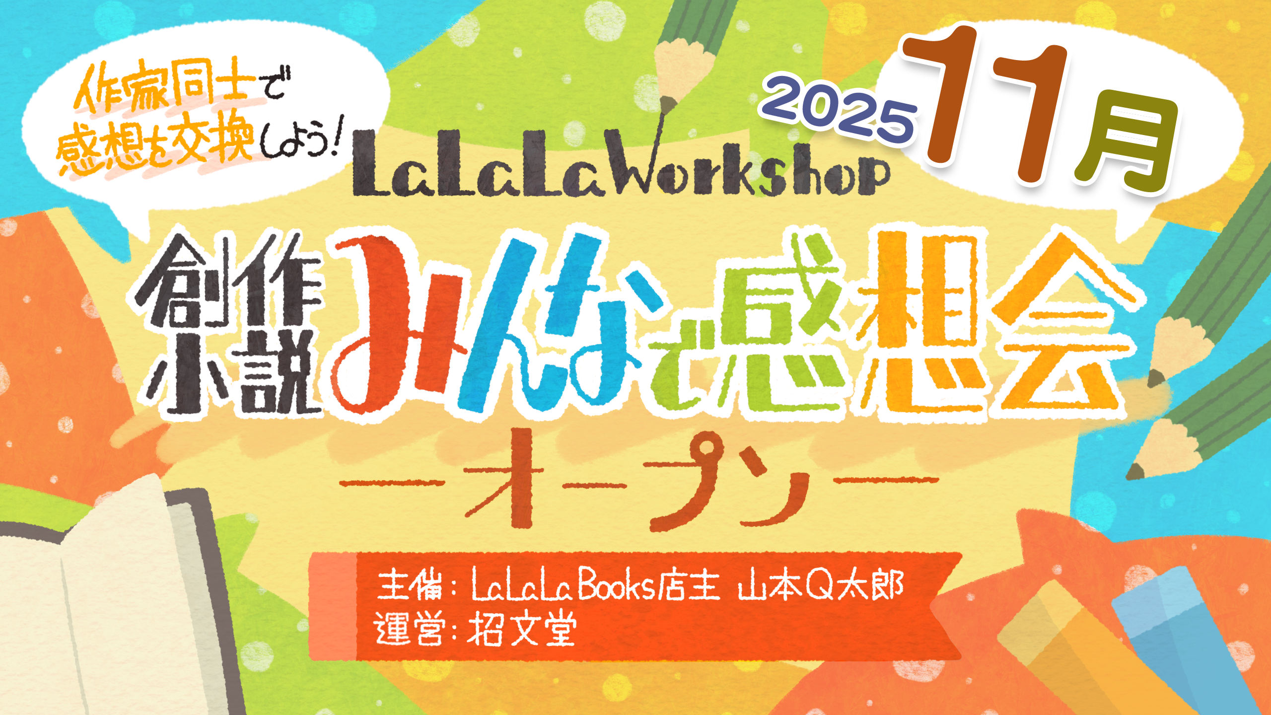 - ワークショップ主催:山本Q太郎(X@QtaroYamamoto 招文堂/LaLaLaBooks店主)