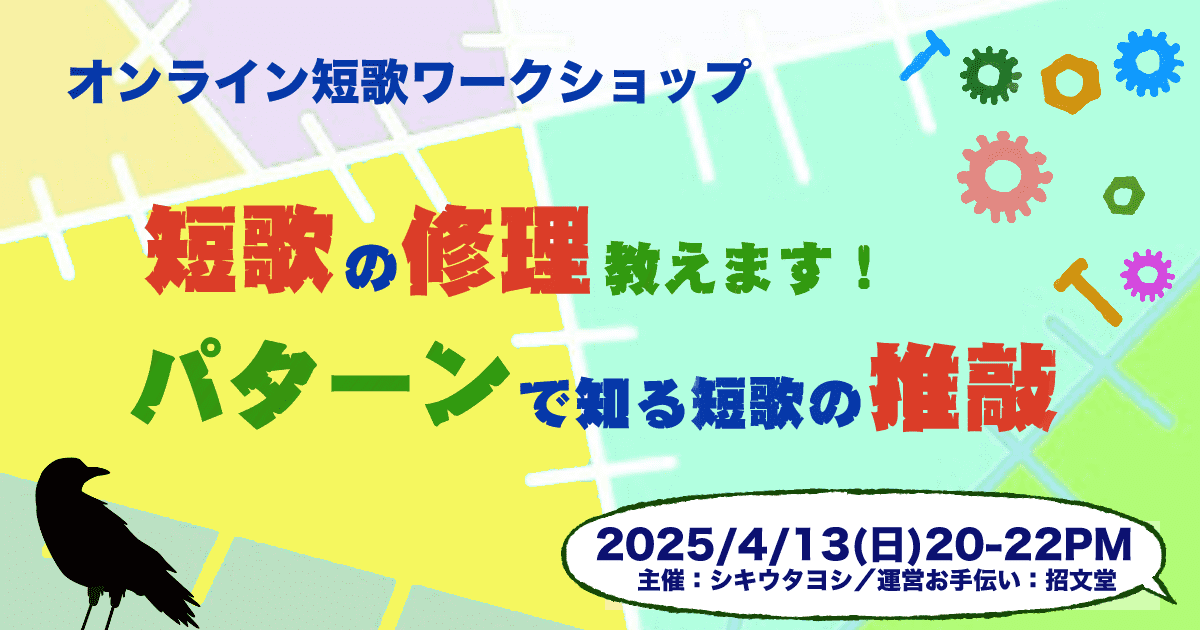 シキウタヨシさん主催のオンライン短歌ワークショップ「 肩の力を抜いて作る」の参加申し込みフォームです。ワークショップの詳細は以下URLをご確認ください。★申込〆切:2025/8/9(土)21時★(余裕があれば、少し延長するかもしれません)※...