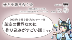 - 主にテキストチャットを使用しますが、主催のウタヨシさんがボイスチャットを通じてみなさんに話しかけます。音声を聞けるよう、スピーカーやイヤフォン等をご用意ください。